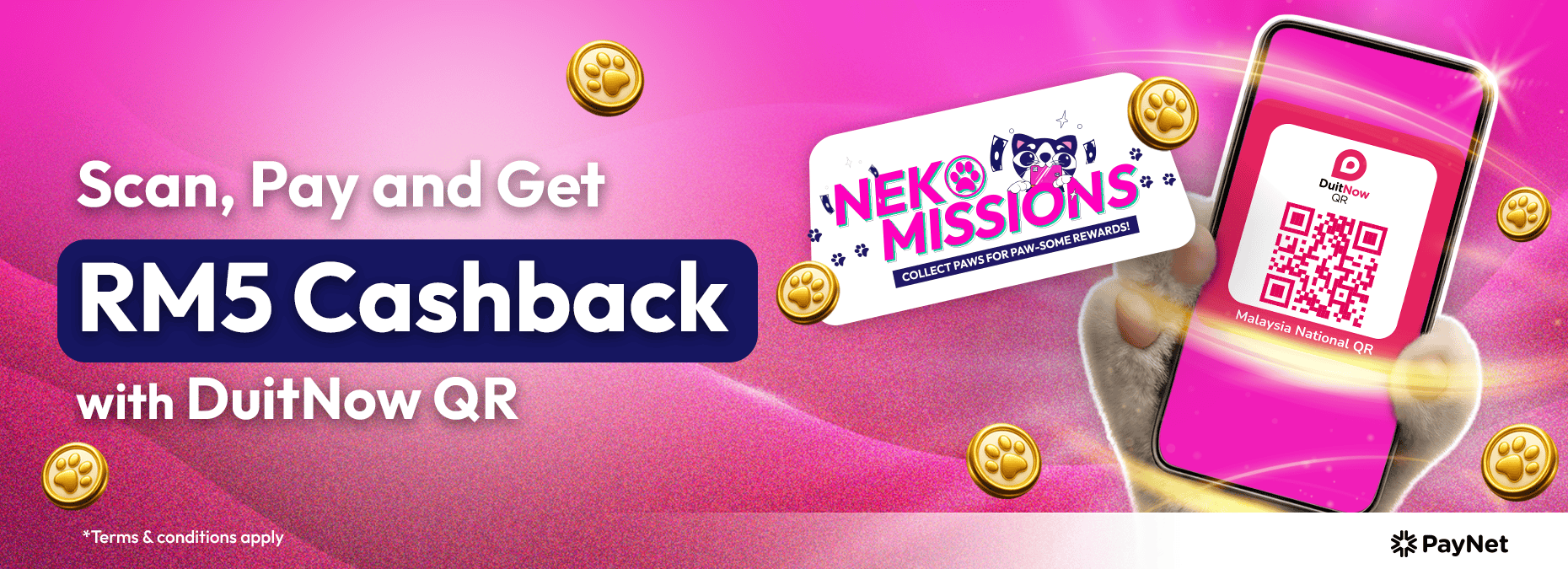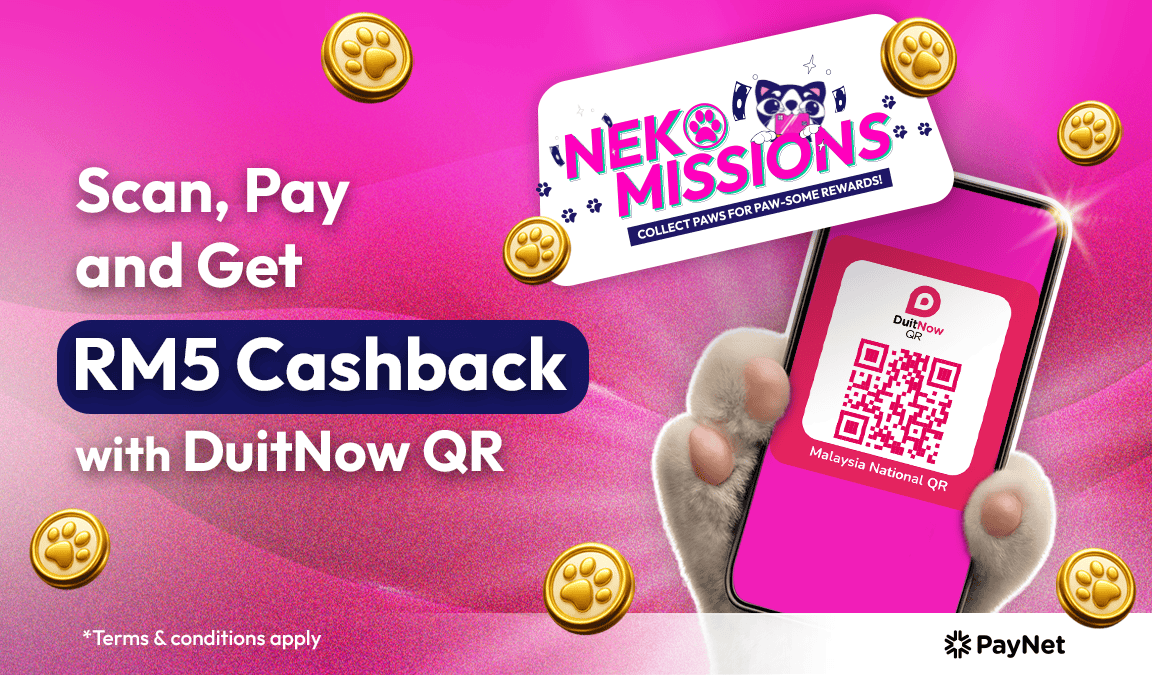For every 10 Neko Paws collected, RM 5 Cashback will be credited to you