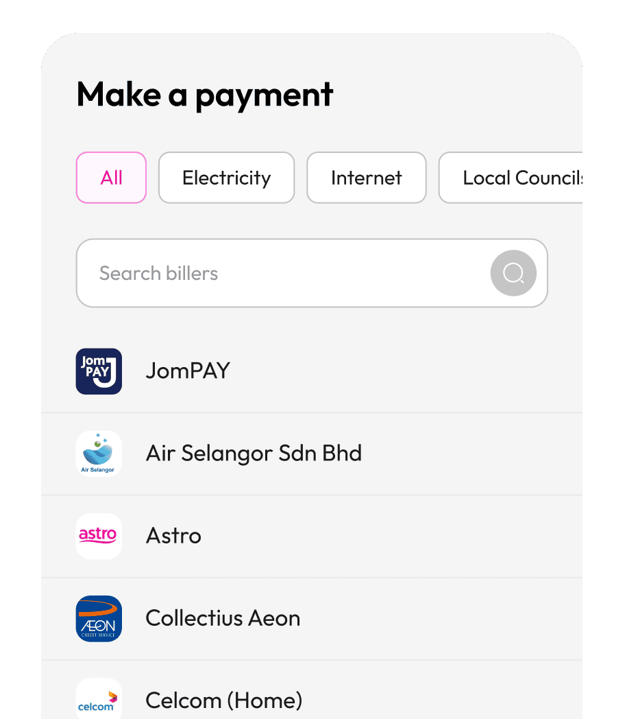 Bayar lebih daripada 50+ penyedia perkhidmatan untuk setiap kategori