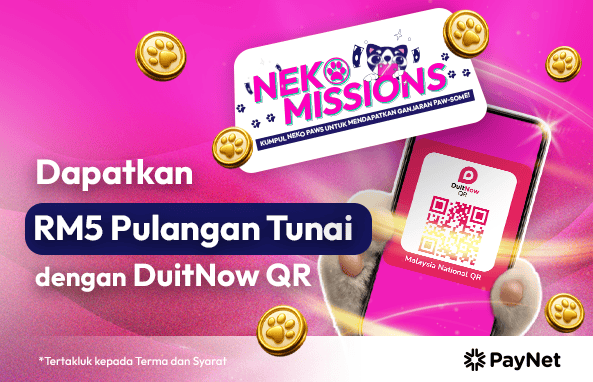 Buat transaksi sekurang-kurangnya RM20 sehari dengan DuitNow QR untuk mengumpul Neko Paw
